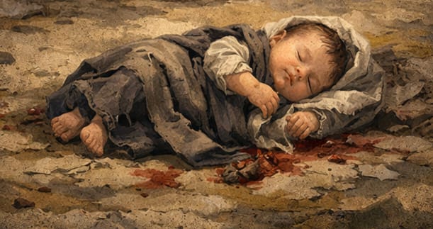 ¶ Je passai près de toi, je t’aperçus baignée dans ton sang, et je te dis : Vis dans ton sang ! je te dis : Vis dans ton sang ! (Ezékiel 16 : 4-5)